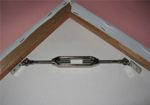 油畫裱框一些時間後,緊繃的畫布面會漸漸鬆弛,其實原因是內架木框慢慢縮小所引起,解決方案便是我們這項利器產品,不銹鋼支撐架,它可以使畫布面保持緊繃,不必因此重新拆下畫布重裱,重裱容易使畫作受損。