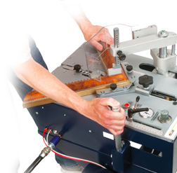 配有可傾斜的落地支架,可從正面或背面操作機器,並具有 一個單級氣動腳踏板,可激活水平夾鉗
